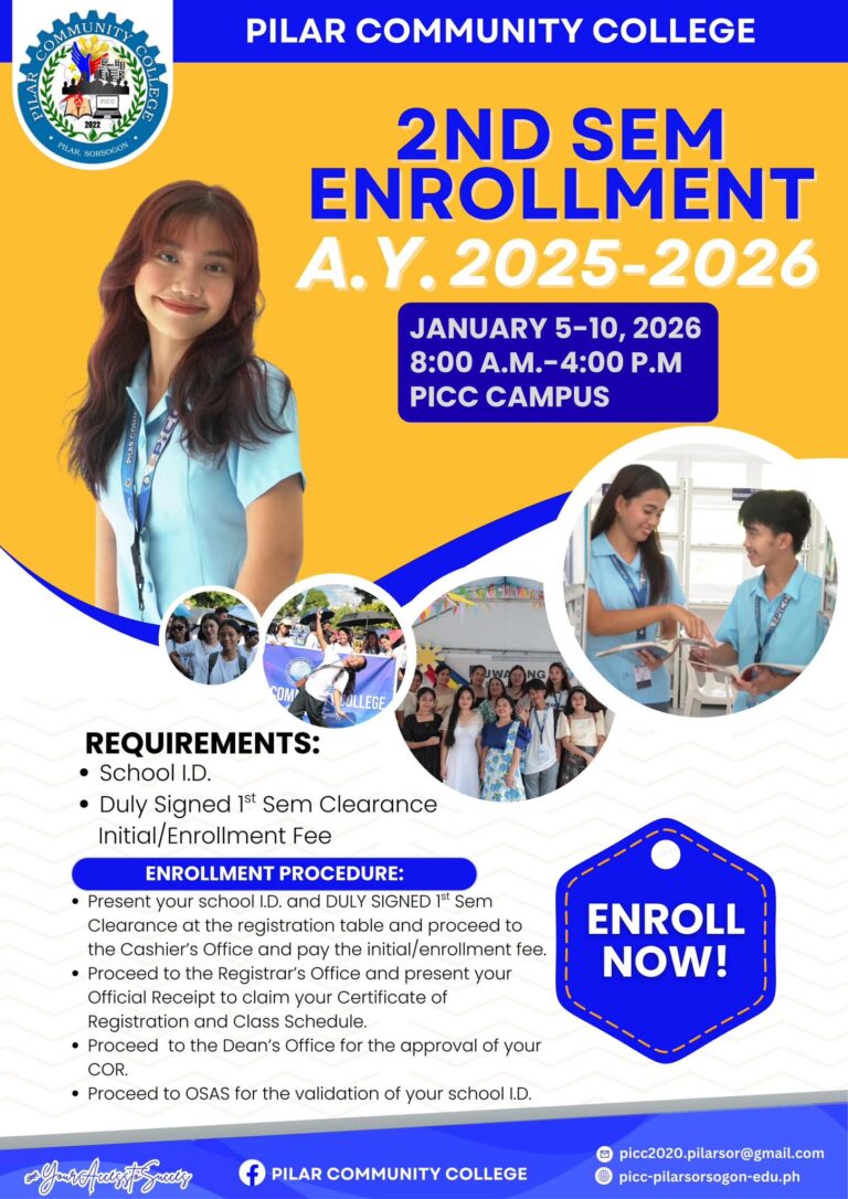 For more than two years, the Pilar Community College (PiCC ) has been committed to empowering the youth through quality education and training which has equipped them with necessary tools and education towards becoming future-ready citizens not just of the Municipality of Pilar, Sorsogon but of the Bicol Region.